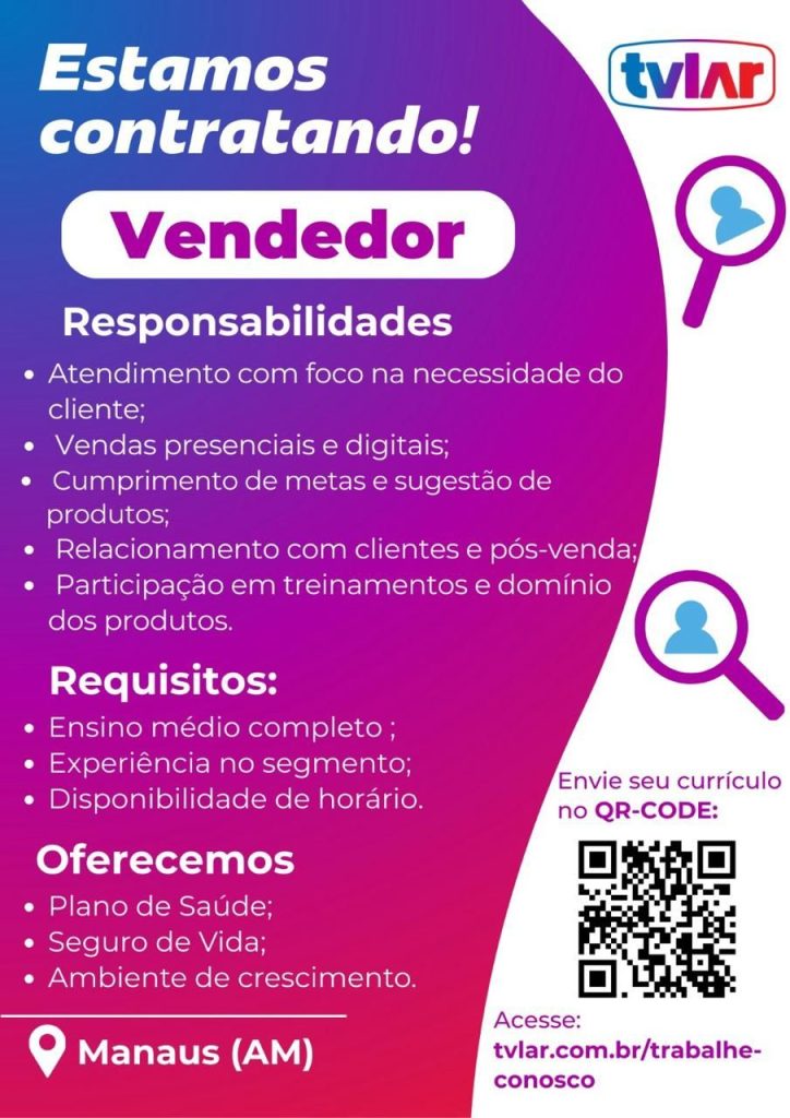 Lojas TV lar está selecionando Vendedor; Envie seu currículo!