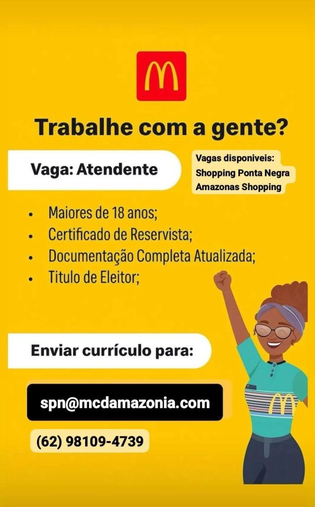 McDonald’s está selecionando Atendente; Envie seu currículo!
