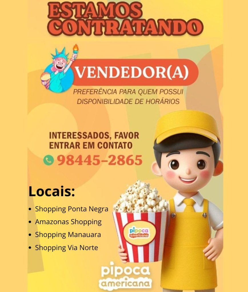 Pipoca Americana seleciona Vendedor (a); Envie seu currículo!