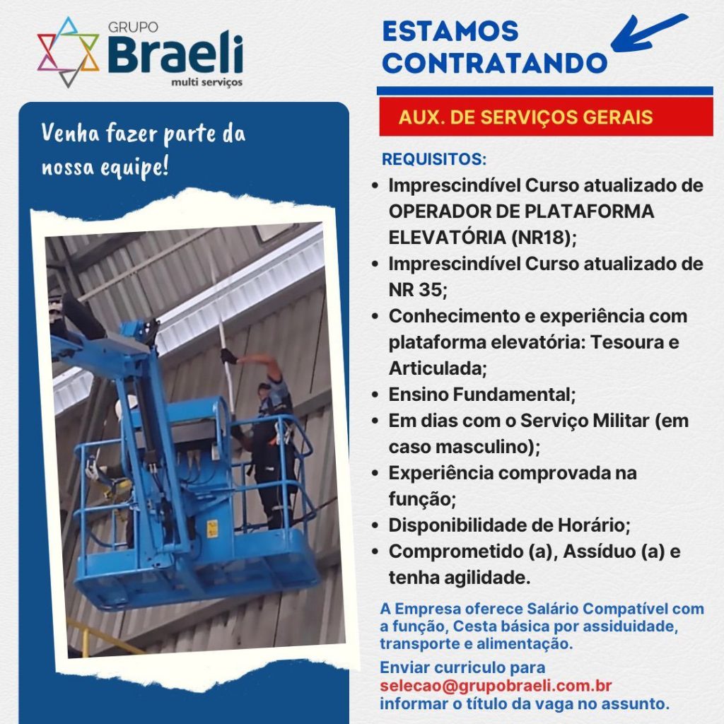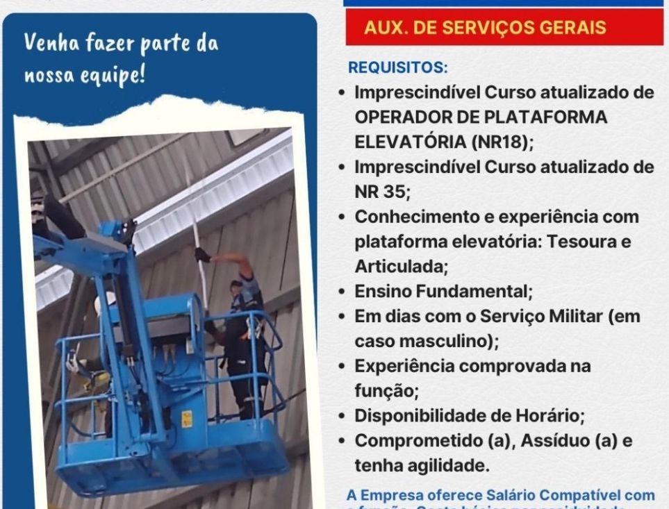 Rh está selecionando Auxiliar de serviços gerais; Envie seu currículo!