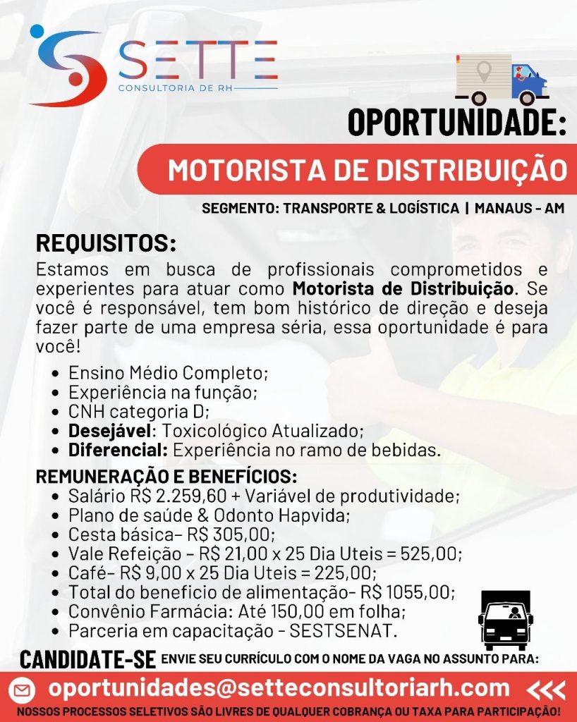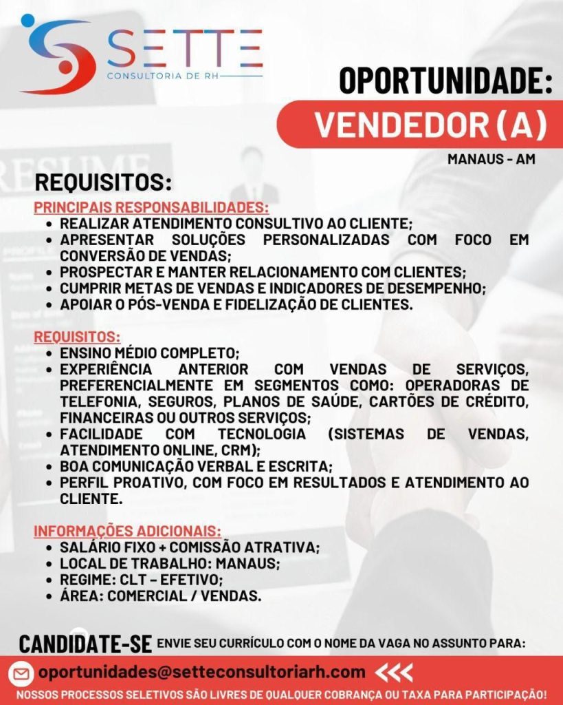 O processo seletivo para esta(s) vaga(s) não cobra absolutamente nada pela sua candidatura. Portanto, jamais aceite qualquer tipo de cobrança para cadastrar seu currículo.