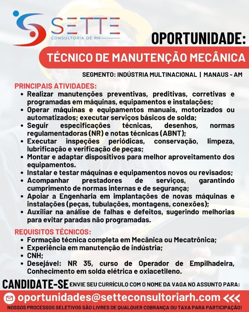 Empresa está selecionando Mecânico de veículos leve; Envie seu currículo!