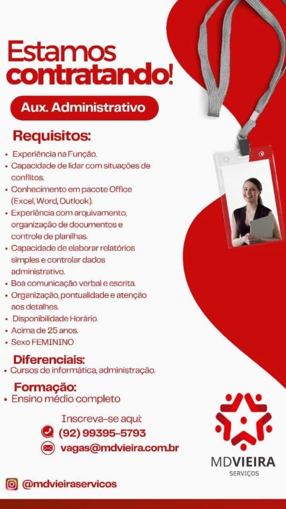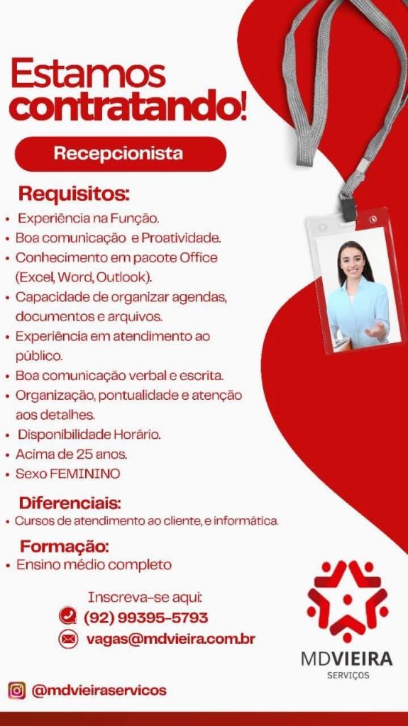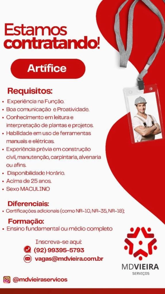 Seleção para seguintes vagas Auxiliar administrativo, Recepcionista, Artífice, Eletricista; Envie seu currículo!