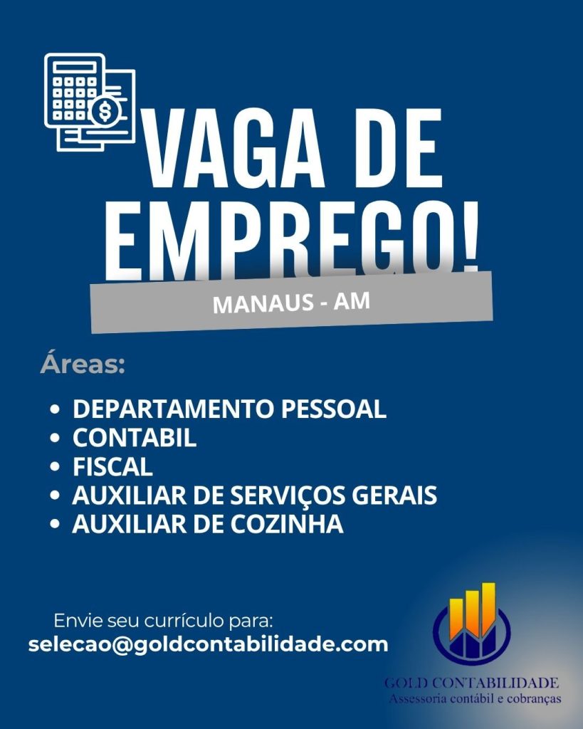 Seleção para seguintes vagas Departamento pessoal, Contábil, Fiscal, Auxiliar de serviços gerais, Auxiliar de cozinha;Envie seu currículo!