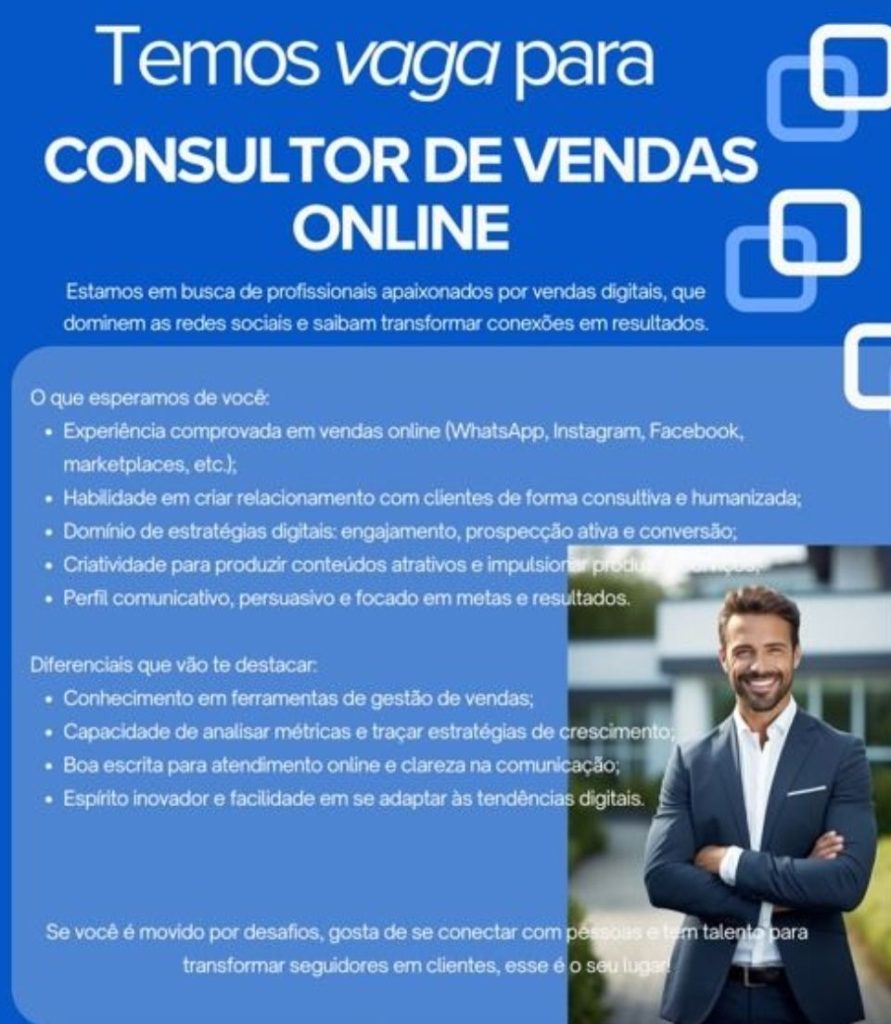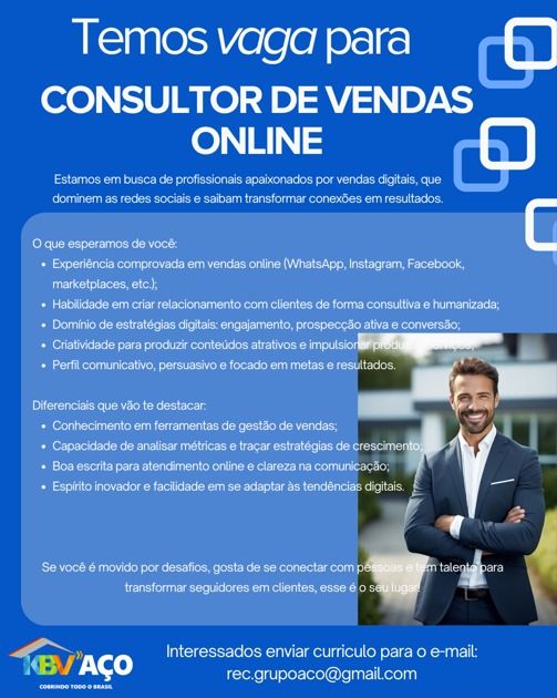 Seleção para vaga de Consultor de vendas online; Envie seu currículo!