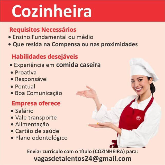 Seleção para vaga de Cozinheira; Envie seu currículo!