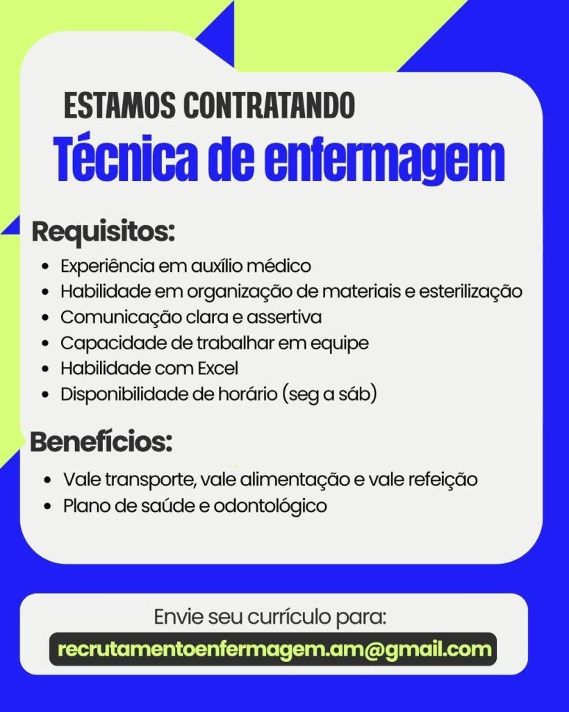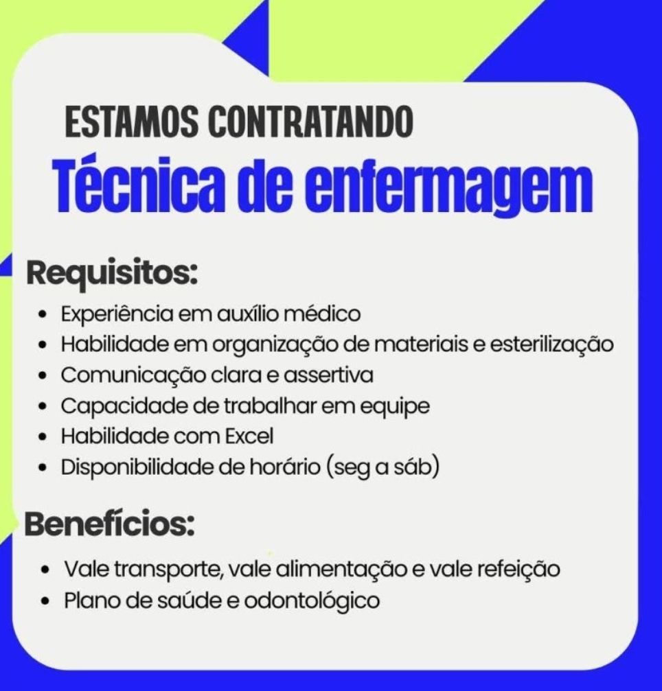 Seleção para vaga de Técnica de enfermagem; Envie seu currículo!