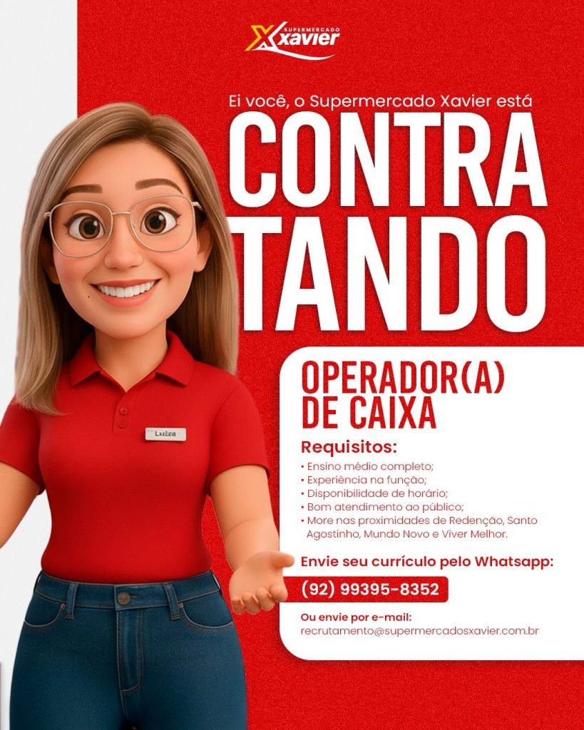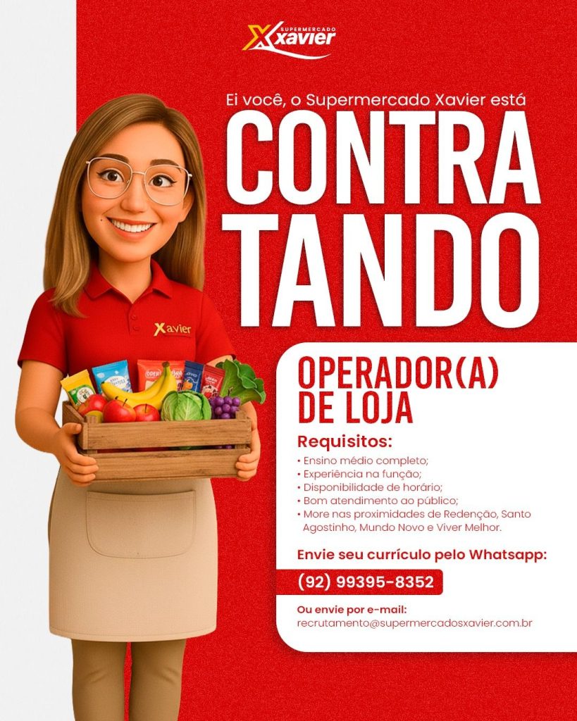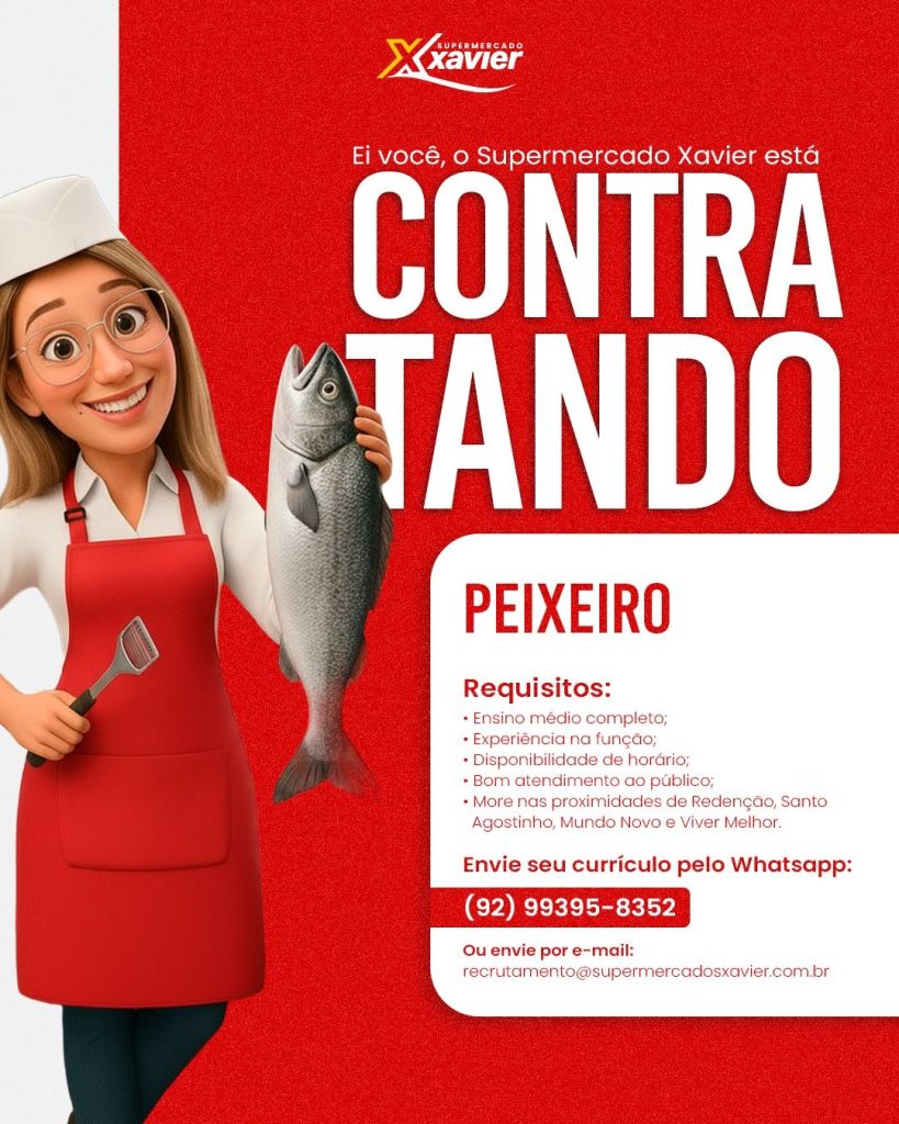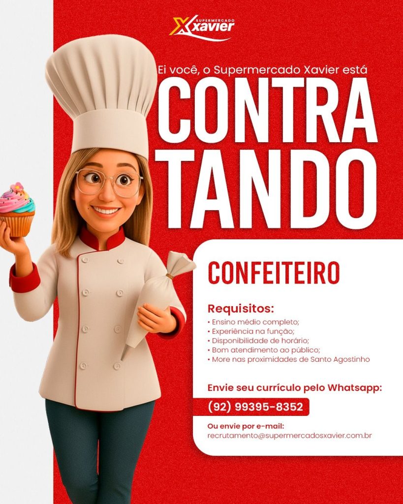 Supermercado Xavier está selecionando Auxiliar de Padeiro, Motoboy, Peixeiro, Auxiliar de açougue, Operador (a) de caixa, Operador (a) de Loja, Atendente de padaria, Confeiteiro, Açougueiro; Envie seu currículo!