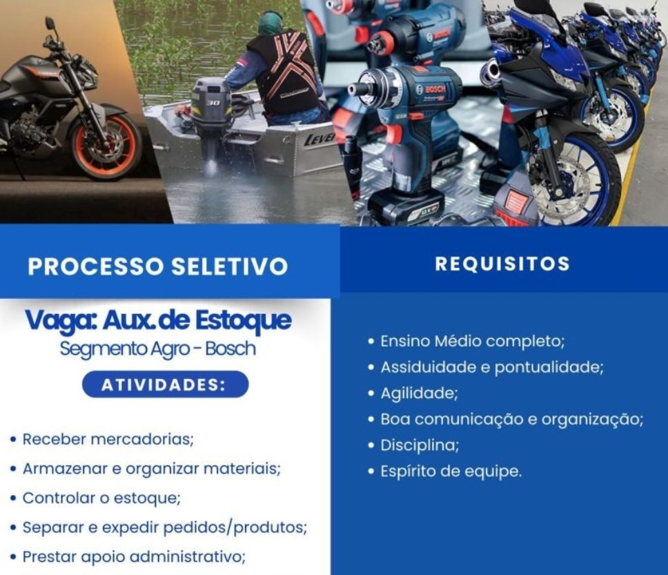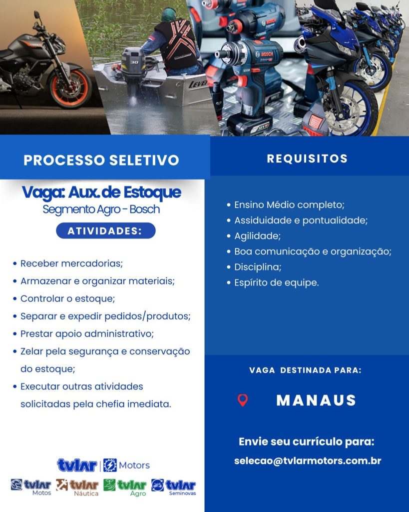 Tv lar Motors está selecionando Aux de estoque; Envie seu currículo!