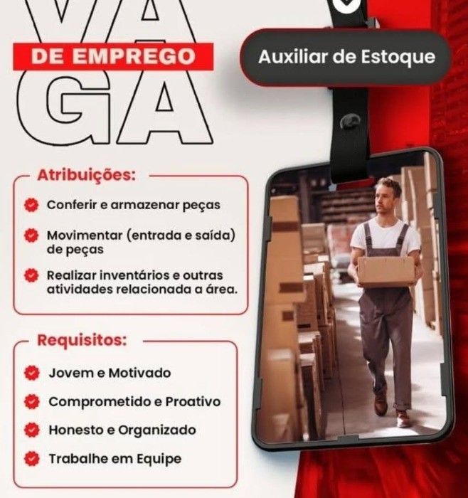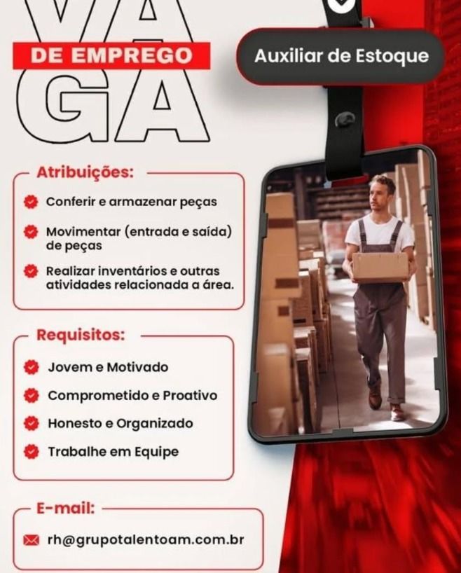 Empresa seleciona para vaga de Auxiliar de estoque; Envie seu currículo!