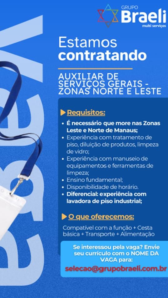 Grupo Braelli seleciona Auxiliar de serviços gerais; Envie seu currículo!