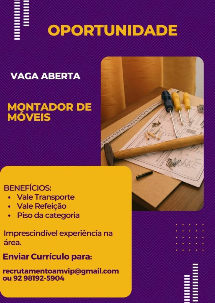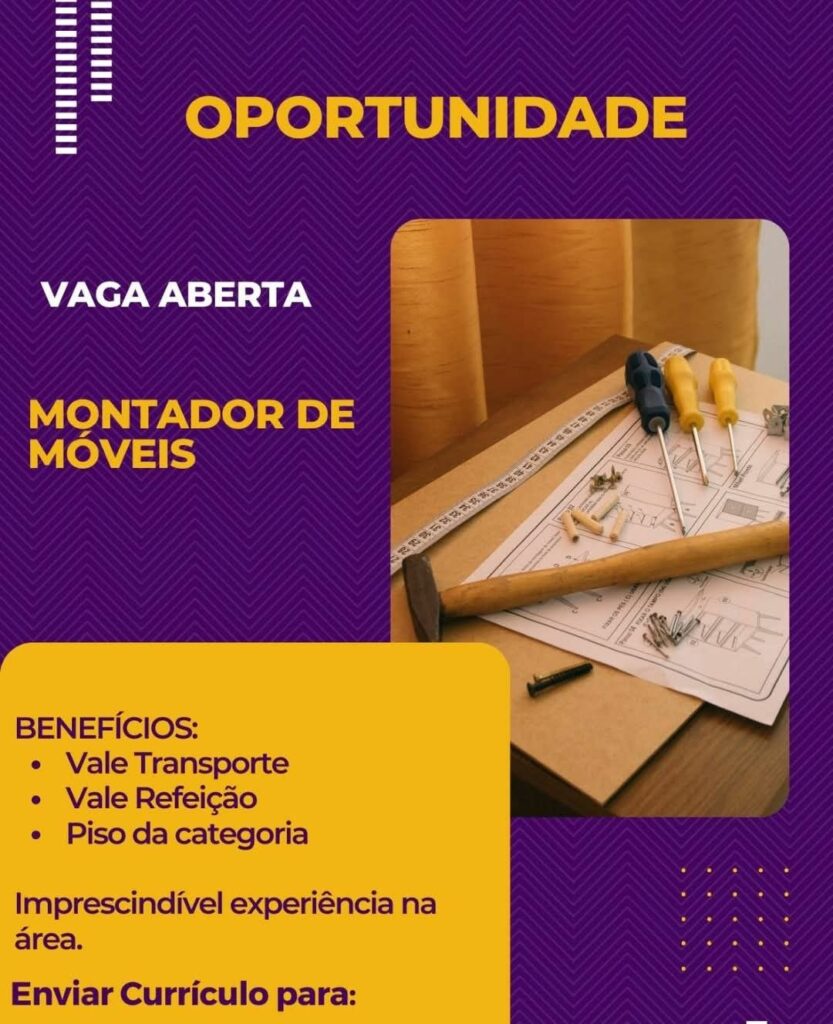 Empresa seleciona para vaga de Montador de móveis; Envie seu currículo!
