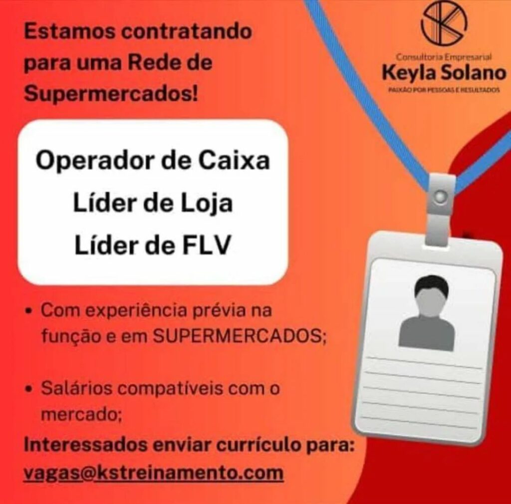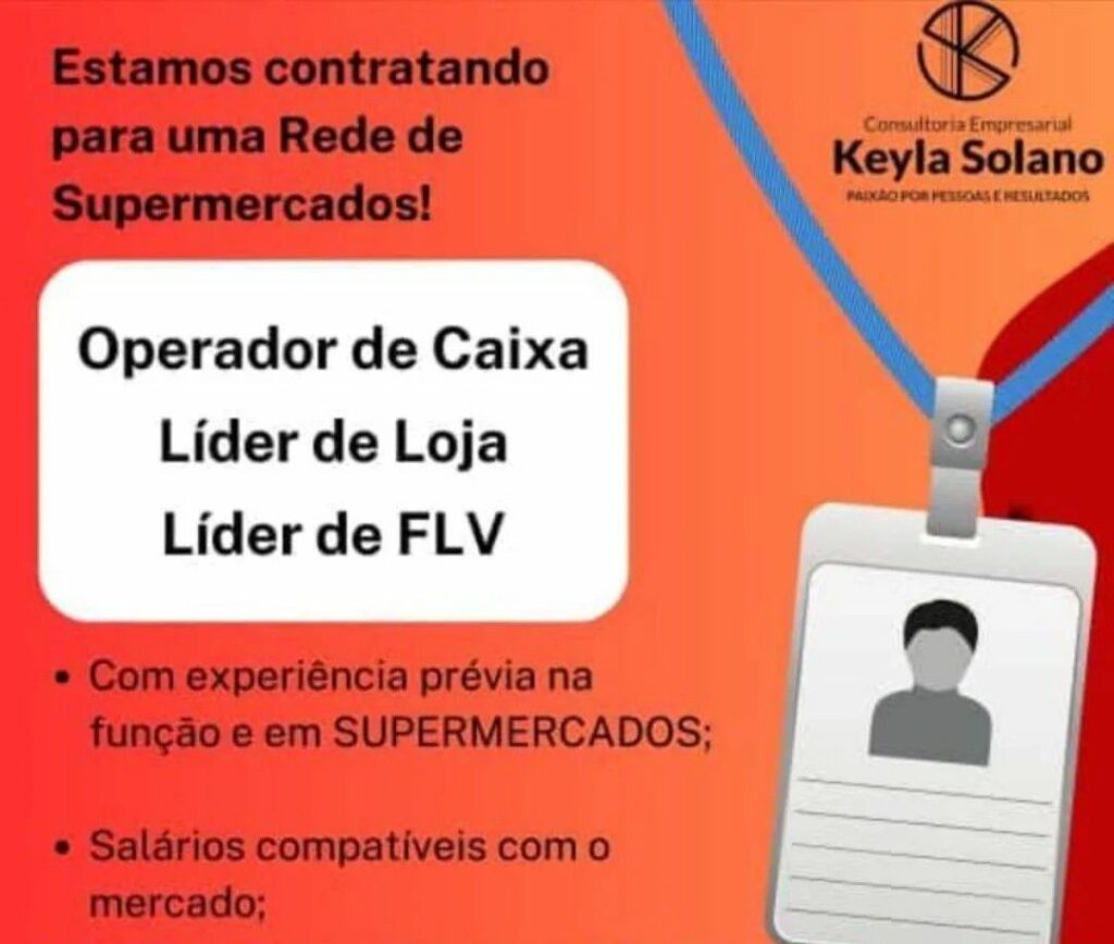 Rede de supermercados contrata Operador de caixa, Líder de loja, líder de FLV; Envie seu currículo!