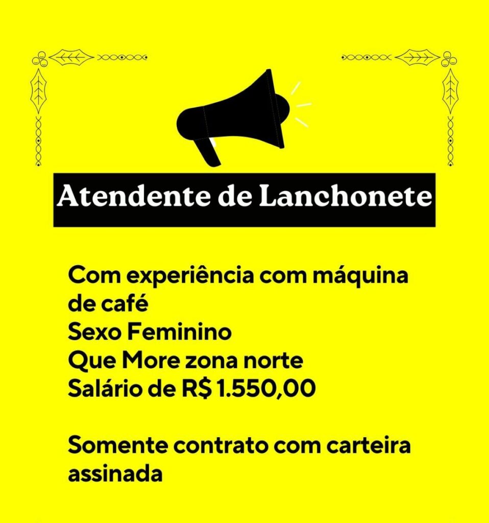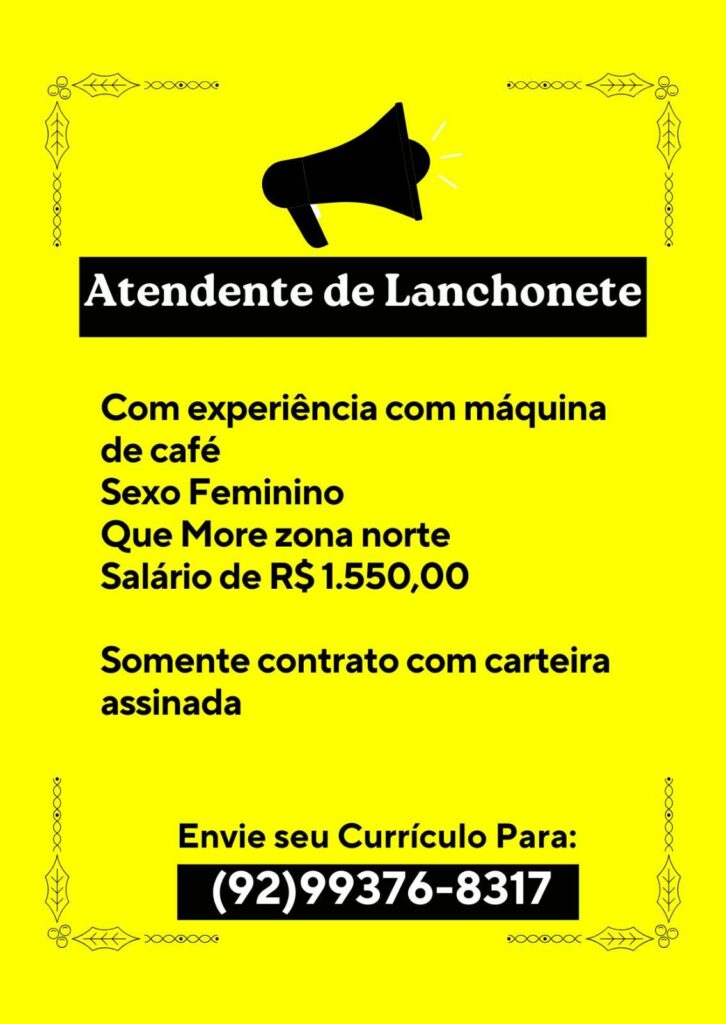 Empresa seleciona para vaga de Atendente de lanchonete; Envie seu currículo!