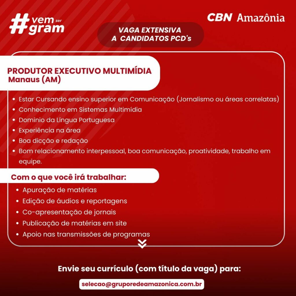 CBN Amazônia Seleciona Produtor executivo multimidia; Envie seu currículo!