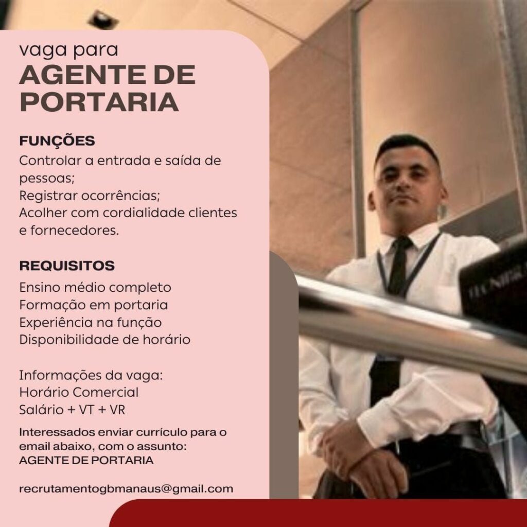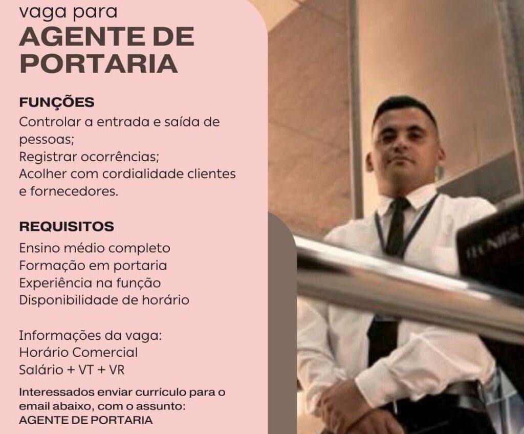 Empresa seleciona para vaga de Agente de portaria; Envie seu currículo!