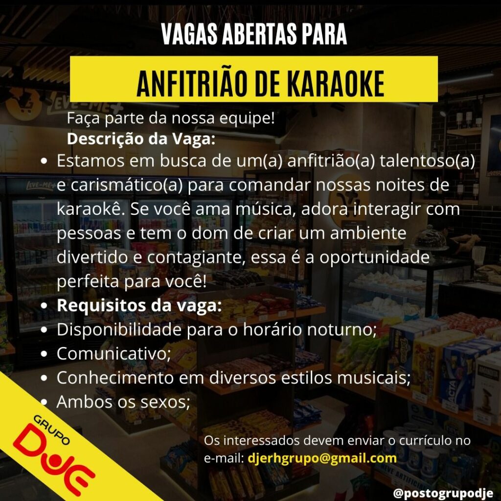 Seleção para Frentista, Auxiliar de cozinha, Atendente, Anfitrião de Karaokê; Envie seu currículo!