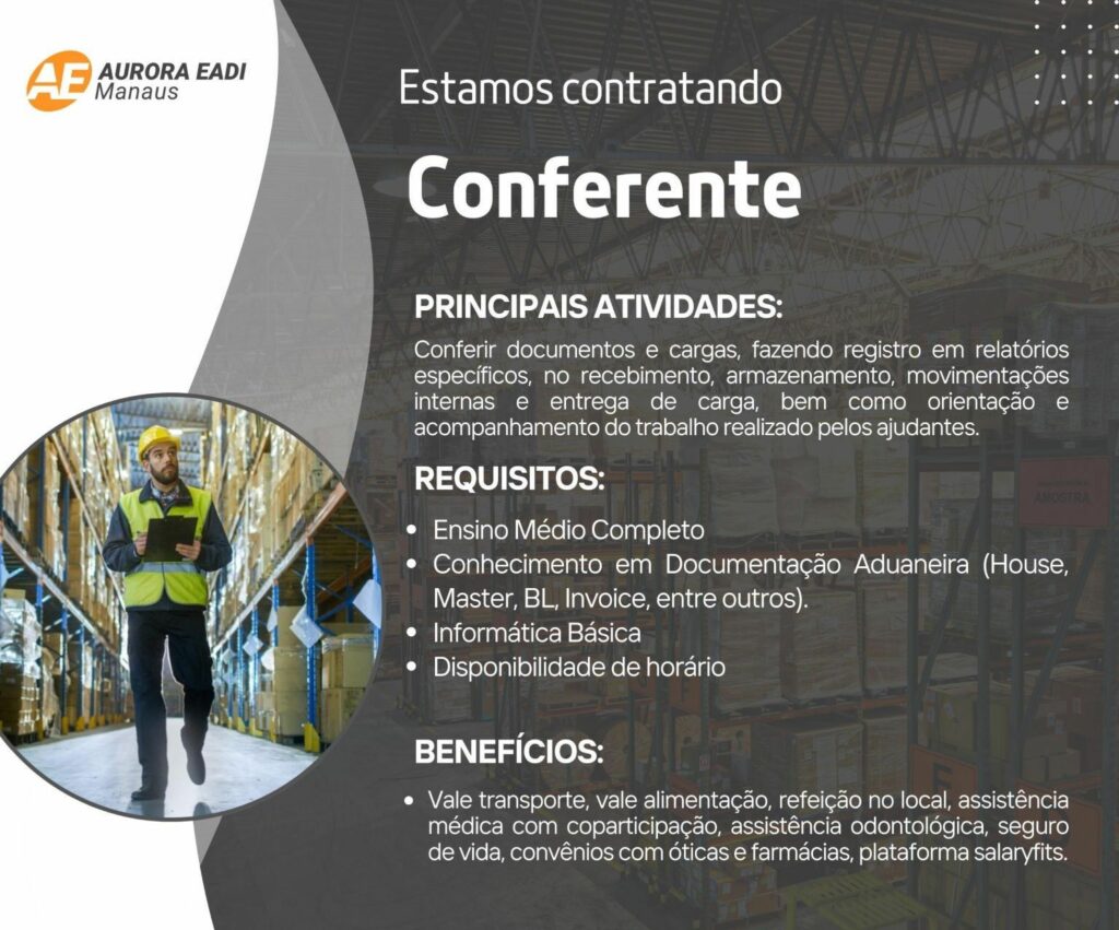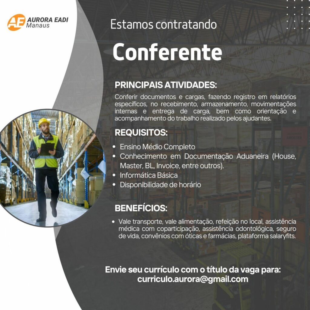 Empresa seleciona para vaga de Conferente; Envie seu currículo!