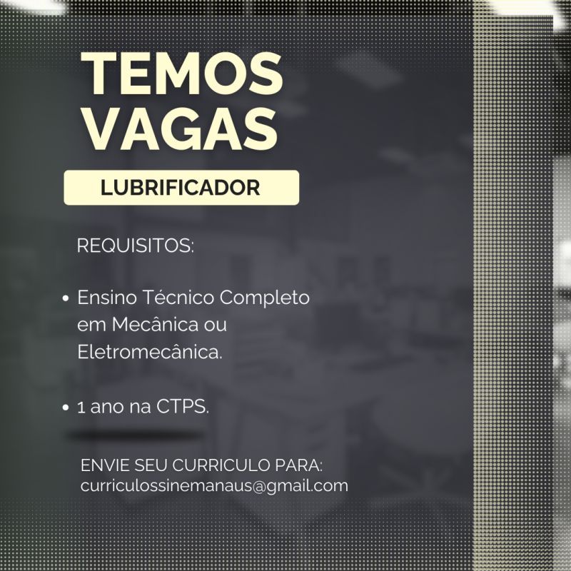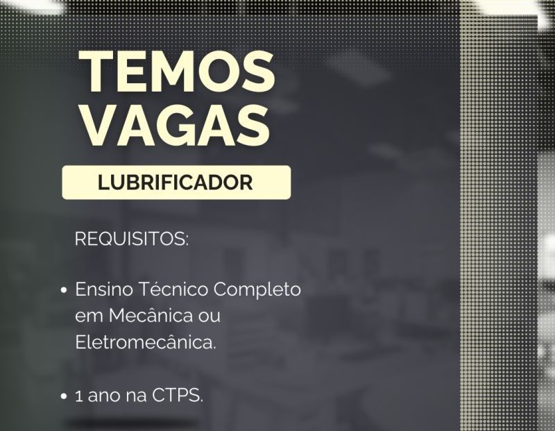 Empresa está selecionando Lubrificador; Envie seu currículo!