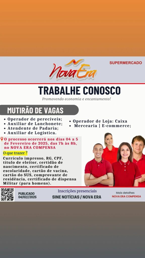 Nova Era Supermercado abre seleção para vagas de emprego em Manaus
