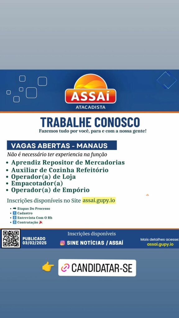 Assaí Atacadista abre seleção para vagas de emprego em Manaus