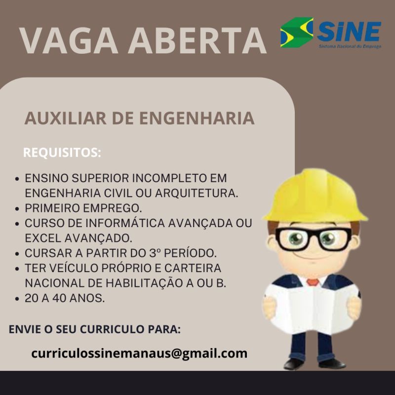 Sine está selecionando Auxiliar de engenharia; Envie seu currículo!