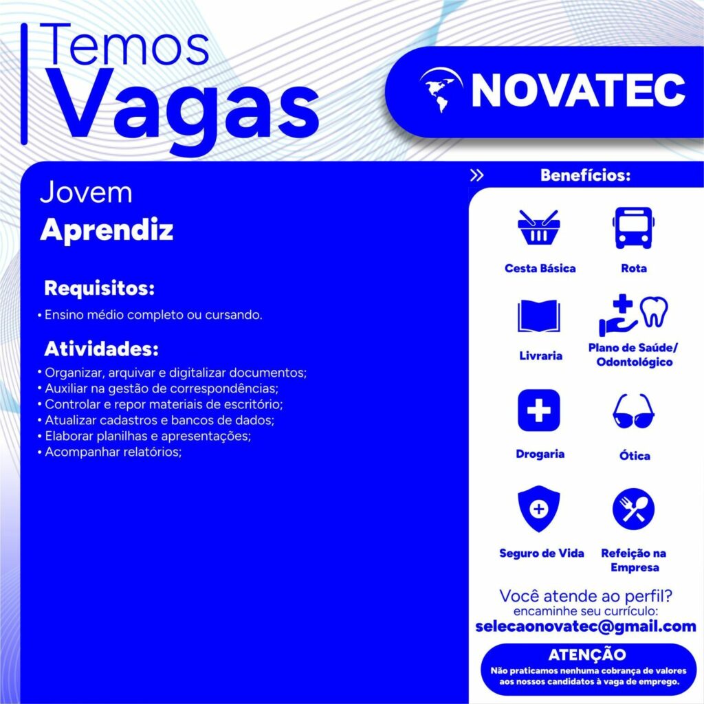Nunca pague qualquer quantia para participar de um processo para que seja selecionado. Não compre nenhum curso, apostilas ou serviços que prometem participação na seleção ou contratação de uma vaga. E nunca insira dados bancários, cartões ou envie documentos por e-mail ou através de sites que não reconhecem. Não nos responsabilizamos por nenhum tipo de pagamento efetuado.