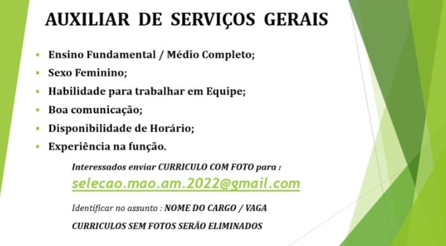 Empresa está selecionando Auxiliar de serviços gerais; Envie seu currículo!