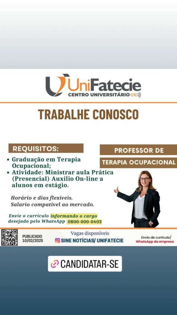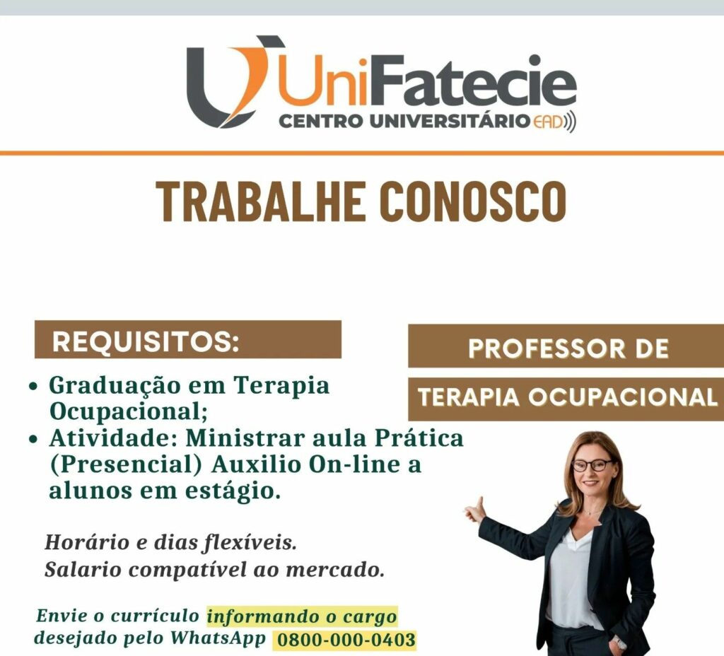 Centro Universitário está selecionando Professor de terapia educacional; Envie seu currículo!