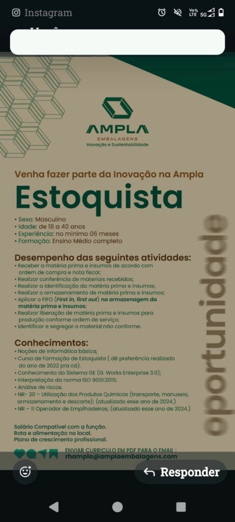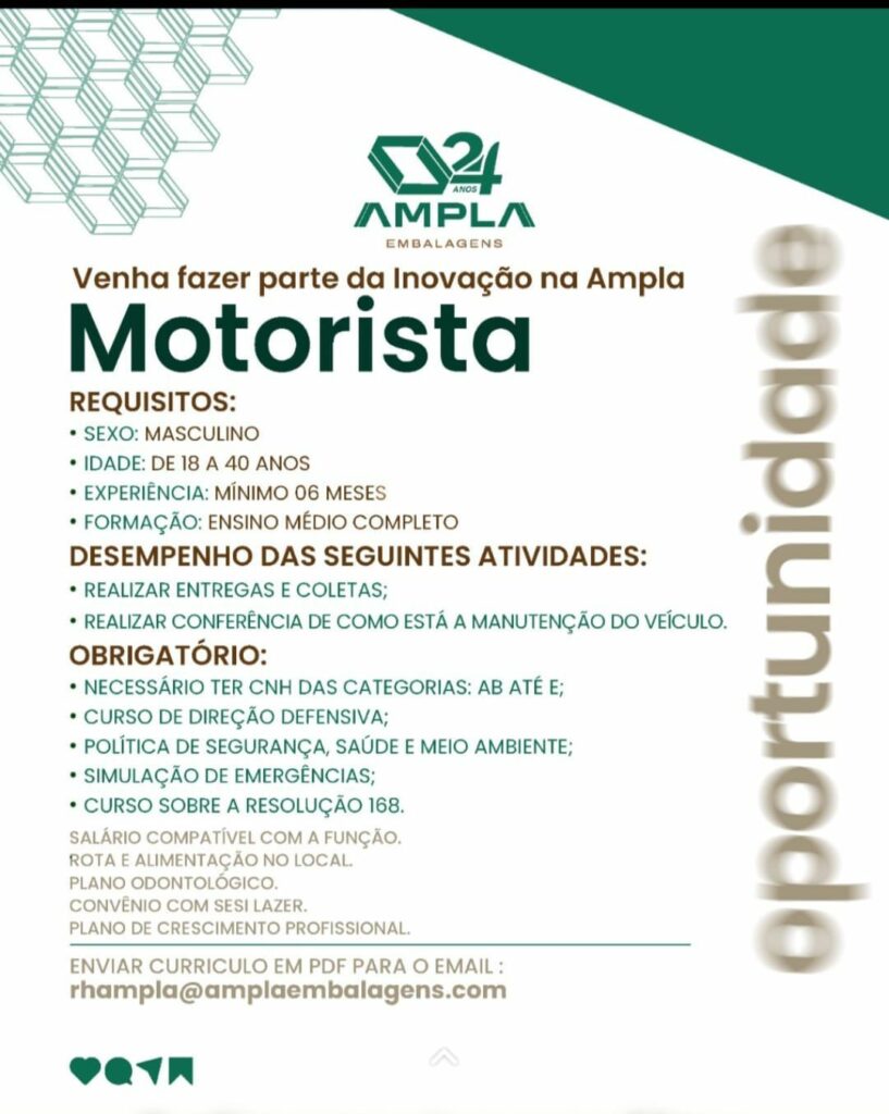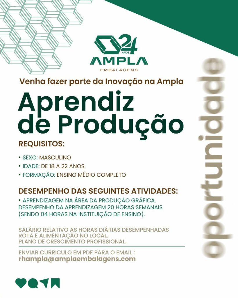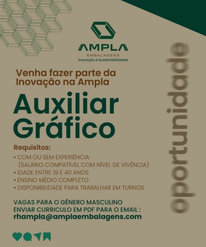 Empresa Ampla Embalagens seleciona Aprendiz de produção, Motorista, Estoquista, Auxiliar gráfico; Envie seu currículo!