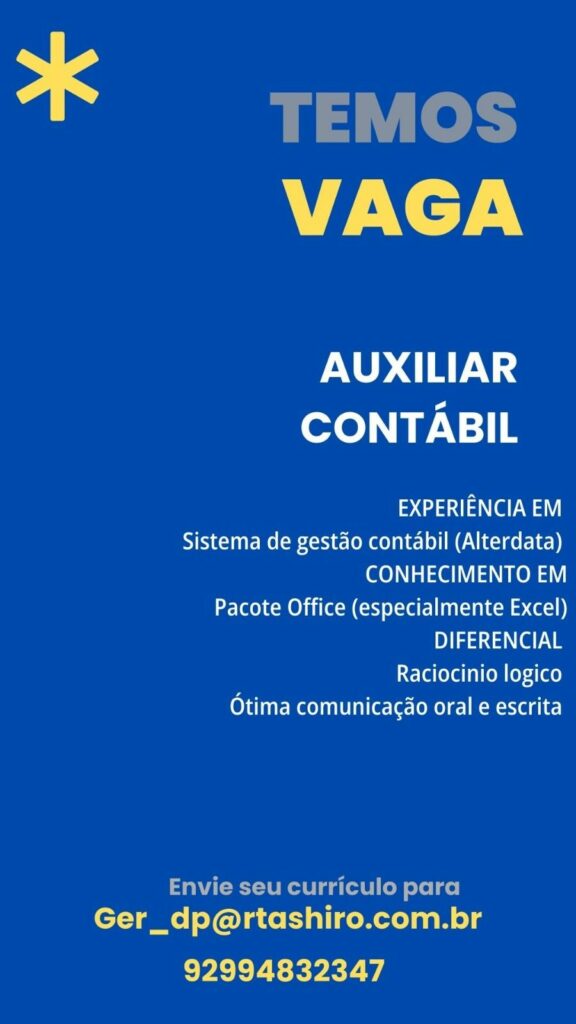 Empresa seleciona para vaga de Auxiliar contábil; Envie seu currículo!