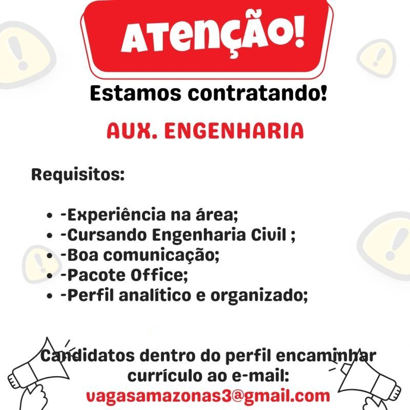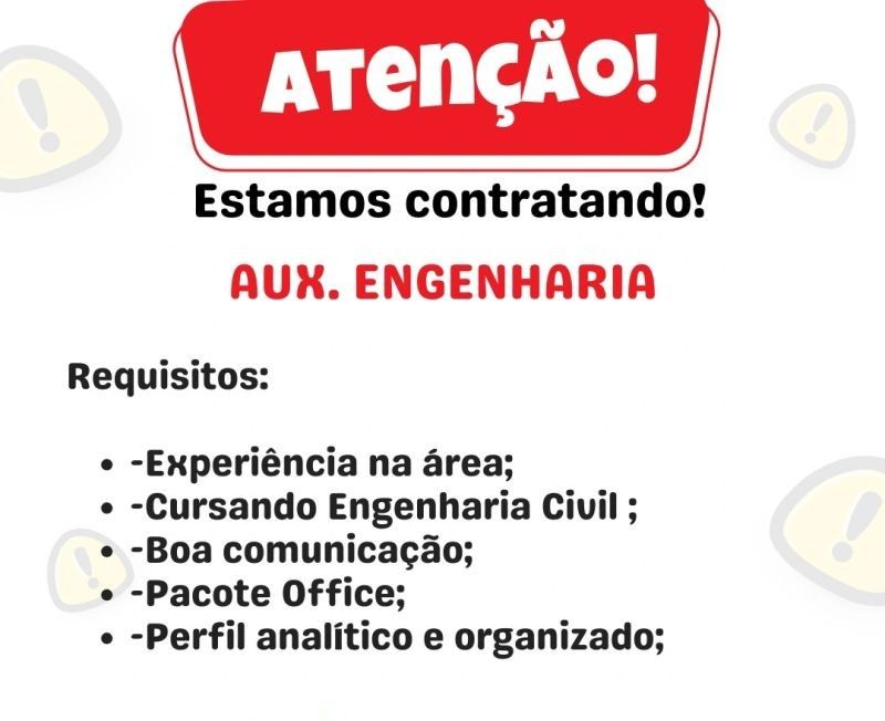 Empresa seleciona para vaga de Auxiliar de engenharia; Envie seu currículo!