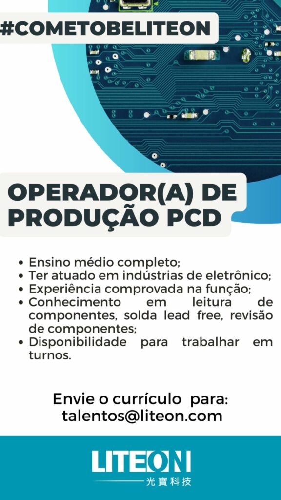 Empresa Liteon seleciona Operador (a) de produção, Jovem Aprendiz; Envie seu currículo!