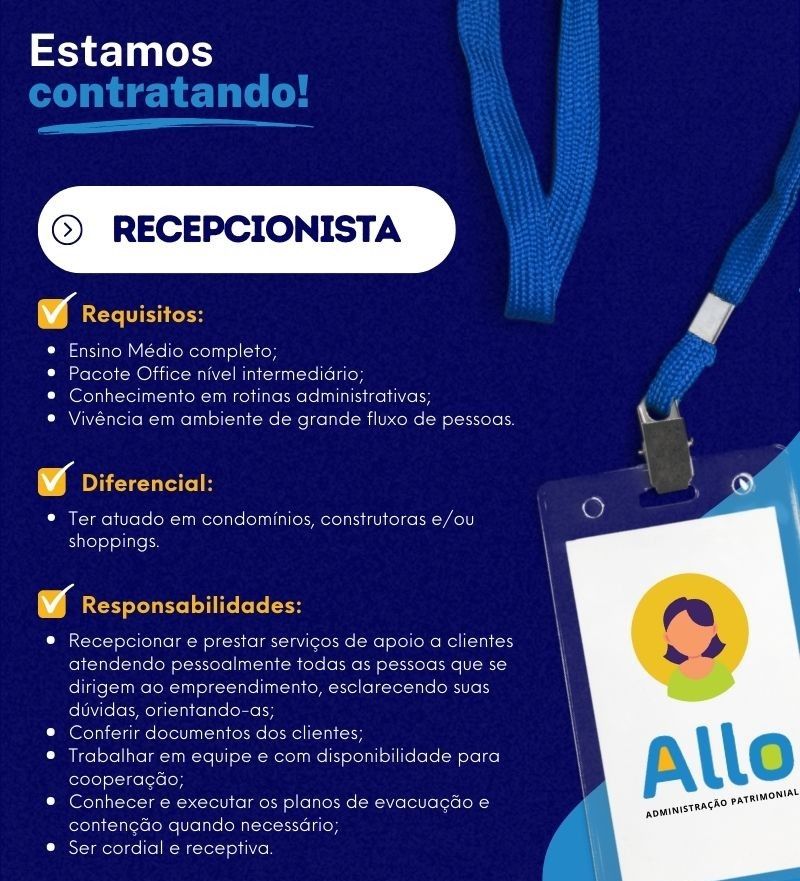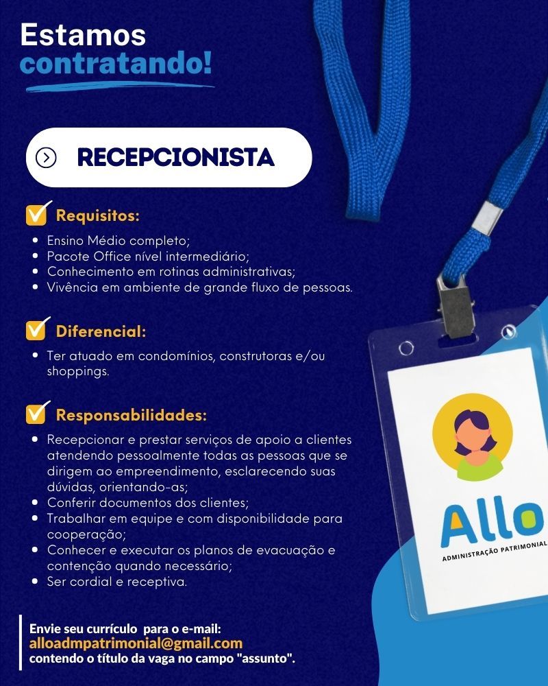 Empresa está selecionando Recepcionista; Envie seu currículo!