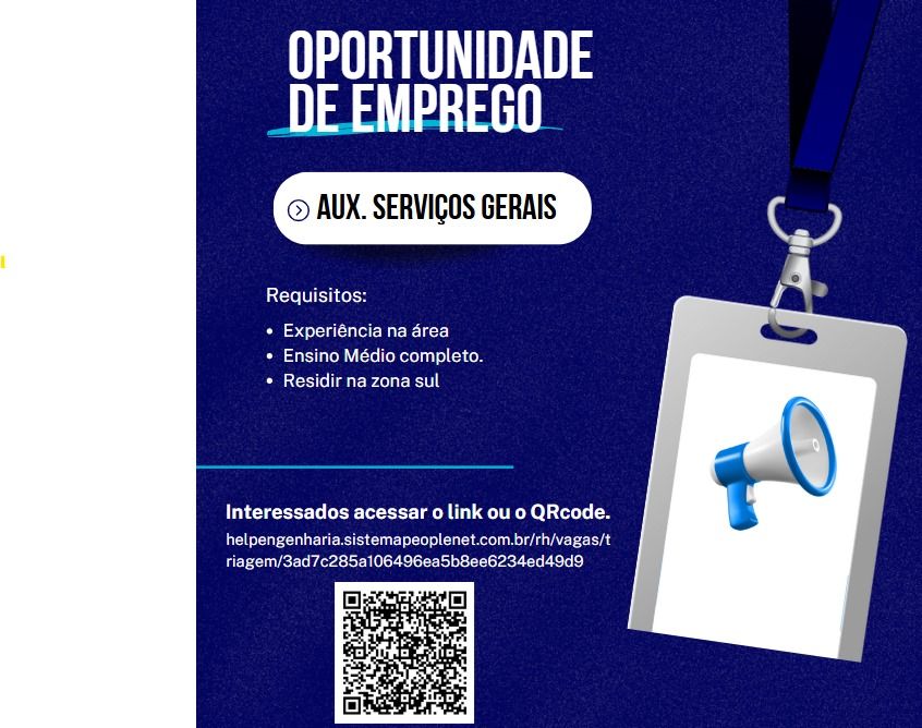 O processo seletivo para esta(s) vaga(s) não cobra absolutamente nada pela sua candidatura. Portanto, jamais aceite qualquer tipo de cobrança para cadastrar seu currículo.