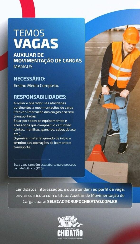 Empresa está selecionando Auxiliar de movimentação de cargas; Envie seu currículo!