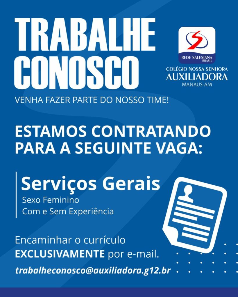 Colégio Auxiliadora seleciona Auxiliar de serviços gerais; Envie seu currículo!