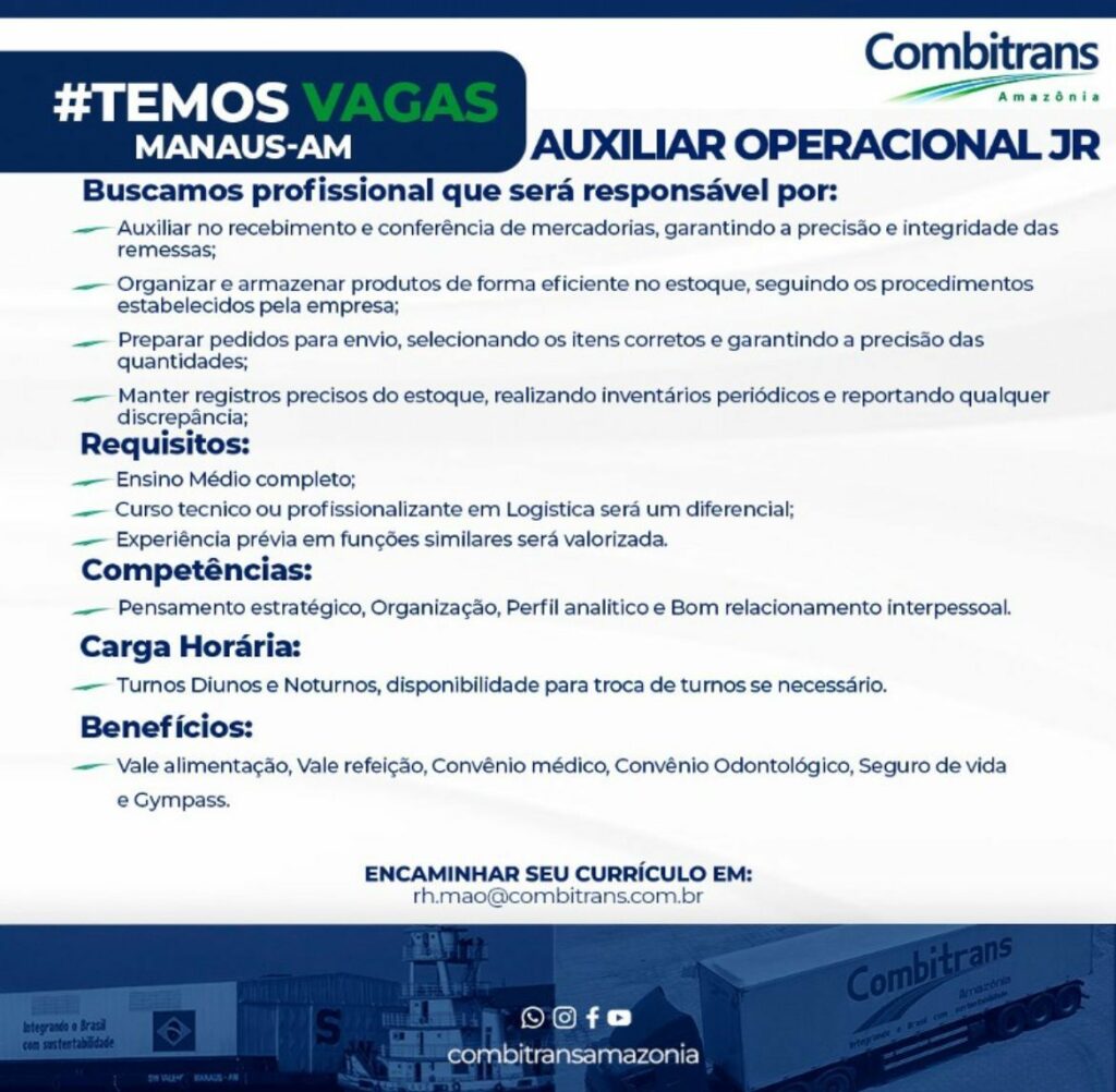 Combitrans seleciona Auxiliar operacional jr; Envie seu currículo!