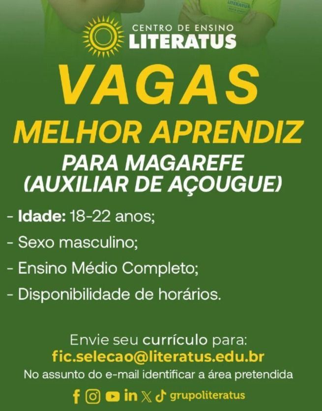 Centro de ensino Literatus seleciona Melhor Aprendiz; Envie seu currículo!