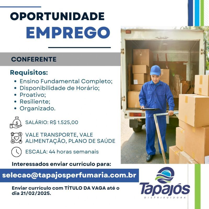 Tapajós perfumaria seleciona Conferente; Envie seu currículo!