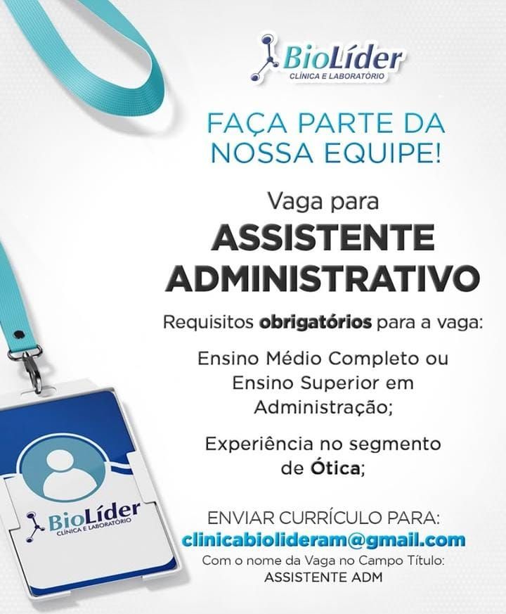 Clínica e laboratório seleciona Assistente administrativo; Envie seu currículo!