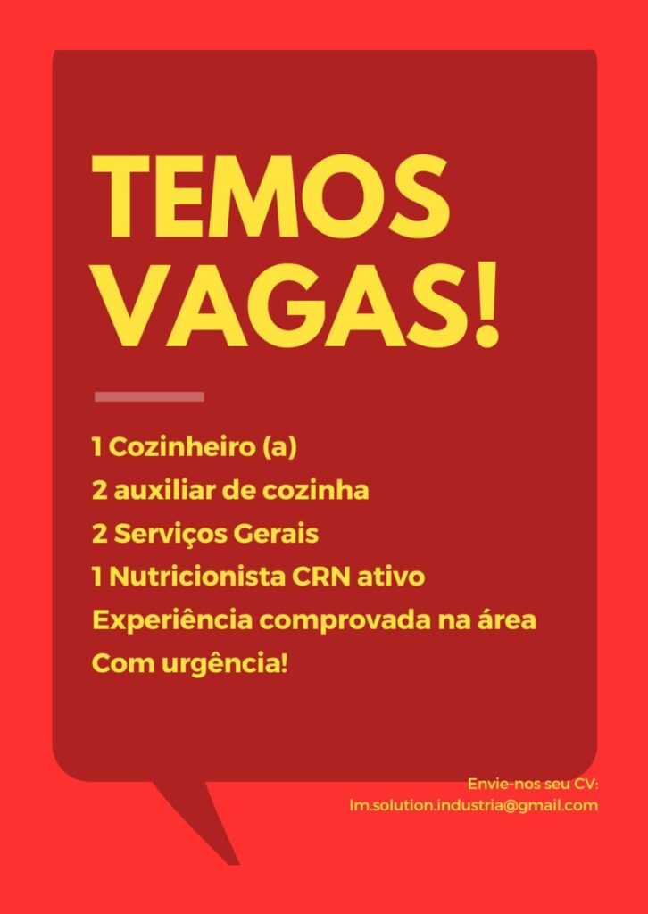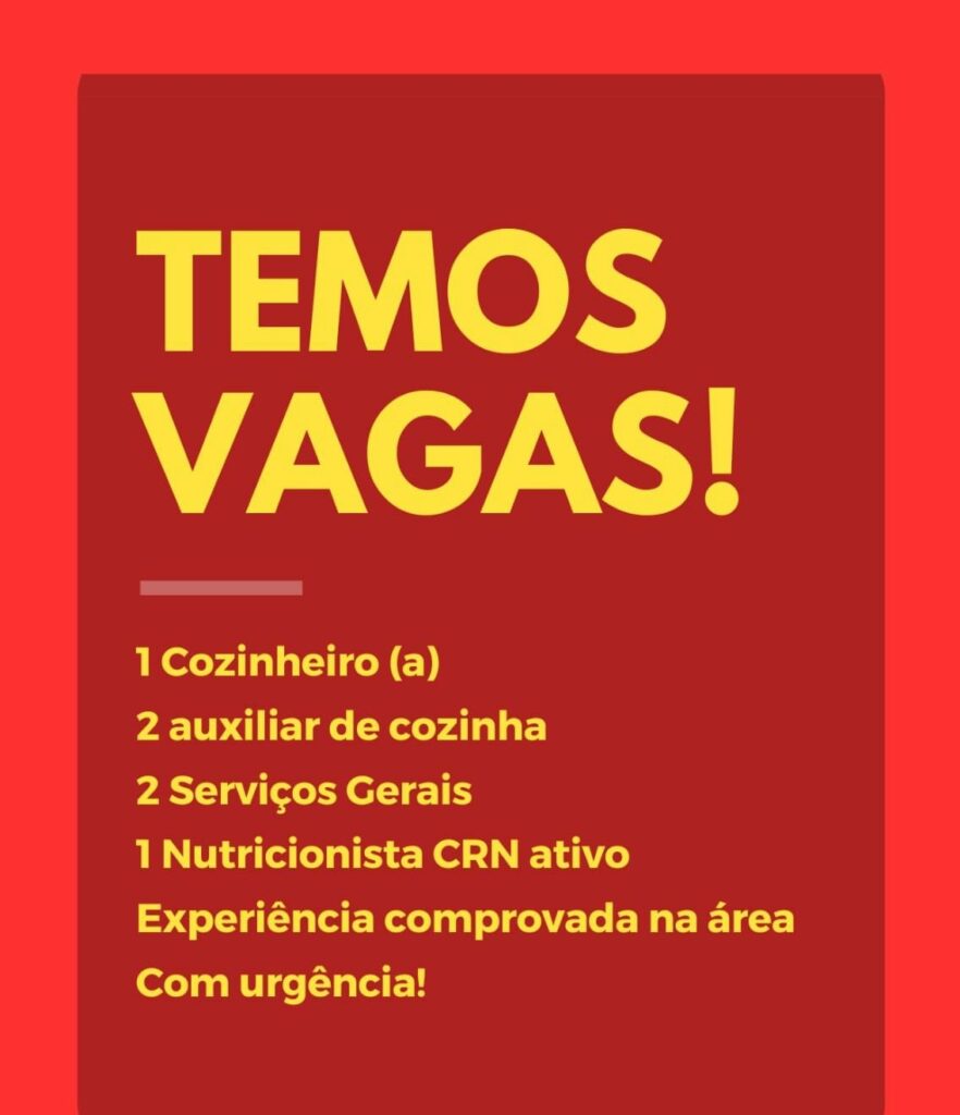 Empresa seleciona Cozinheiro (a), Auxiliar de cozinha, Serviços Gerais, Nutricionista CRN ativo; Envie seu currículo!