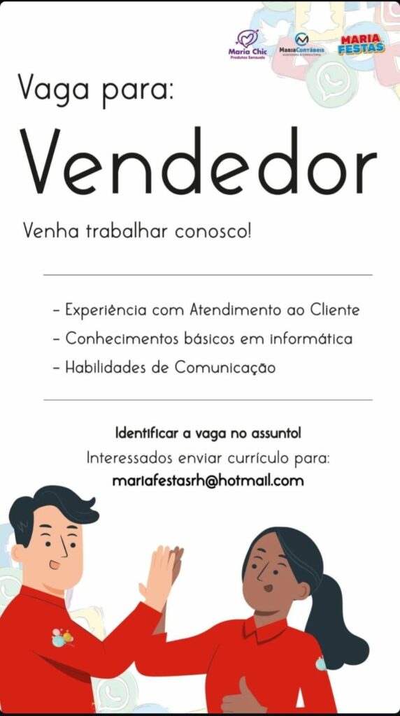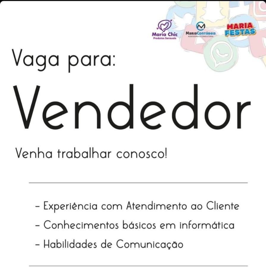 Seleção para vaga de Vendedor; Envie seu currículo!