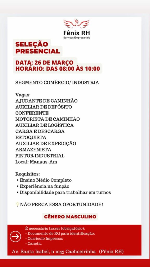 Rh abre seleção para vagas de emprego em Manaus
