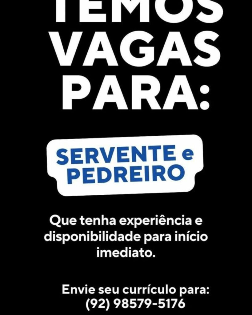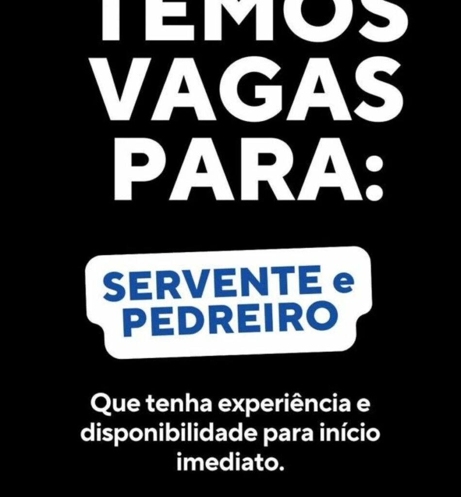 Seleção para seguintes vagas Servente, Pedreiro; Envie seu currículo!