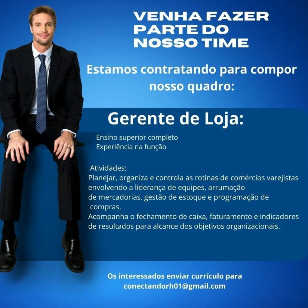 Empresa está selecionando Consultor de vendas, Gerente de loja; Envie seu currículo!