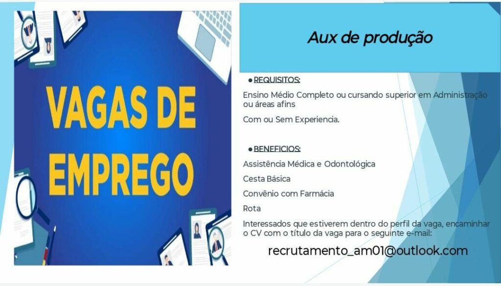 • Auxiliar de Produção e Jovem Aprendiz para Trabalhar na Honda da Amazônia