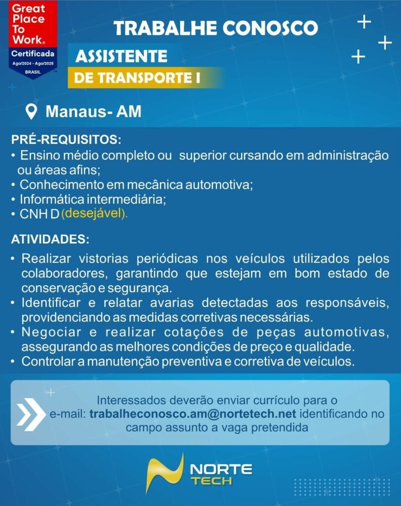 Norte Tech seleciona Assistente administrativo l; Envie seu currículo!