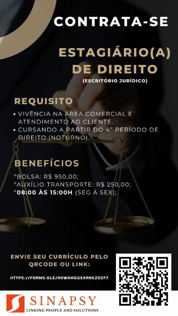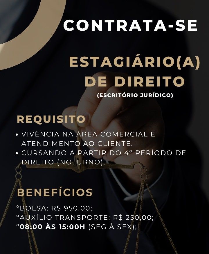 Rh está selecionando Estagiário (a) de direito; Envie seu currículo!