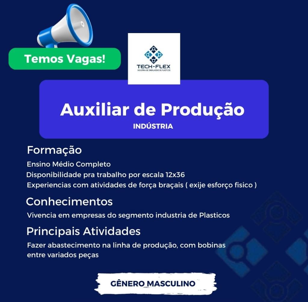 Indústria de grande porte contrata Auxiliar de produção; Envie seu currículo!